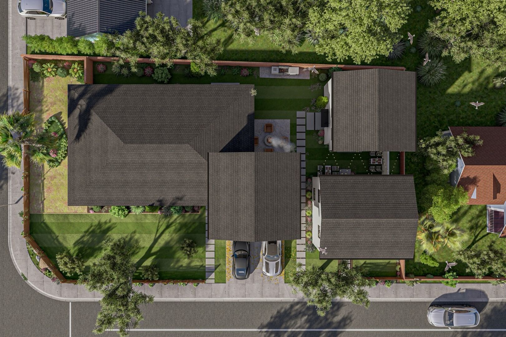 - Private fenced-in yard space with turf to be completed before move in - see digital rendering by way of example