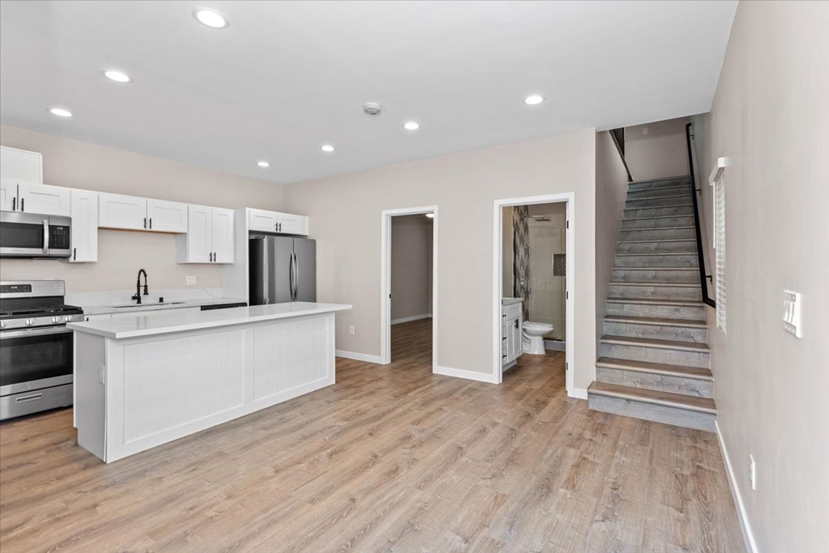 - Open eat-in kitchen