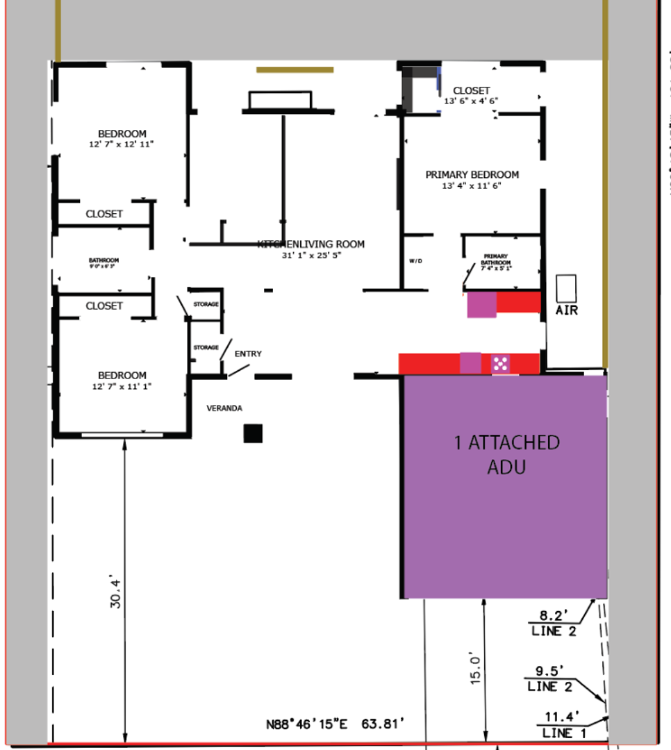 - Home is "ADU 1" on property diagram