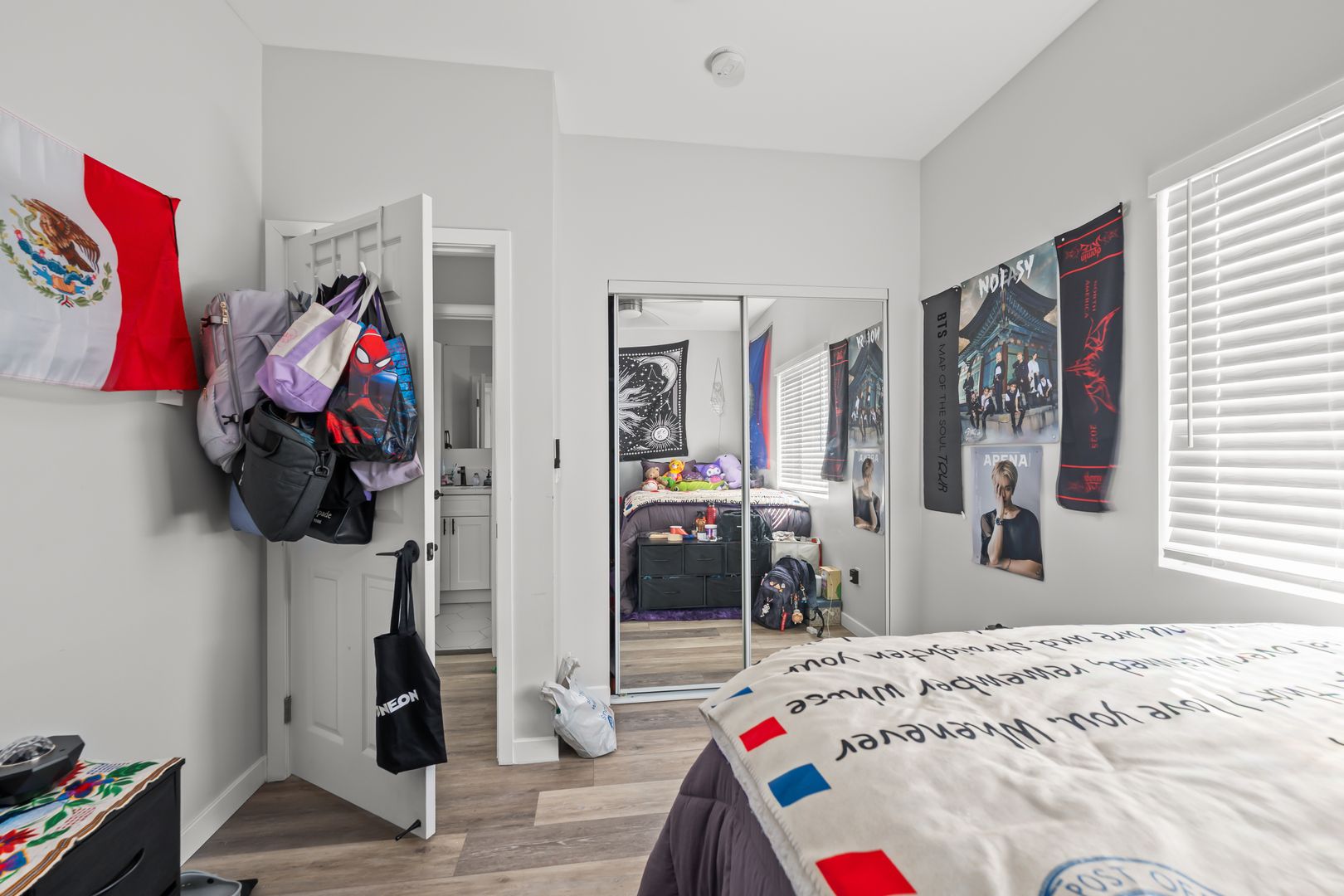 - Ceiling fans & mirrored closet doors